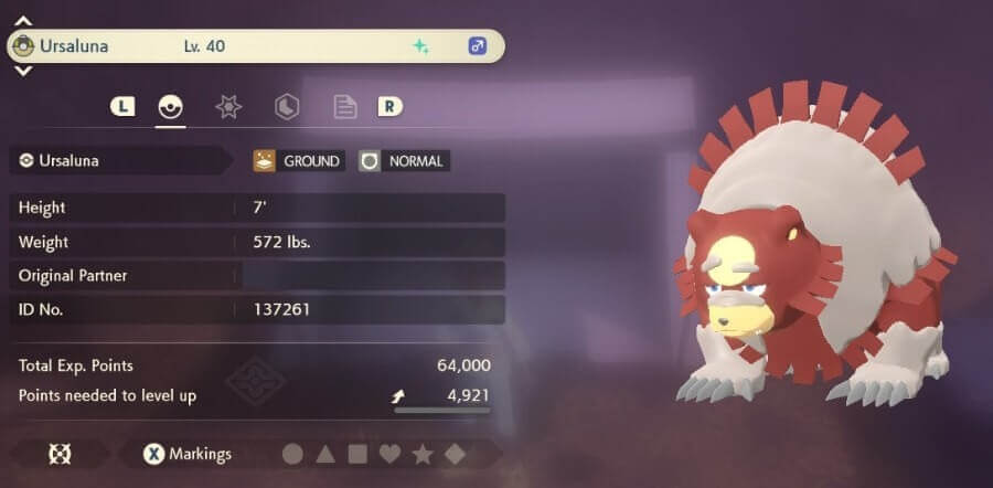 您可以通过以下方式获得 Ursaluna 不断发展的 Teddiursa 和 Ursaring. 您可以在以下位置找到 Teddiursa 响亮的路径和大熊座的戒指. 要进化成 Ursaluna,请使用 满月期间 Ursaring 的泥炭块.