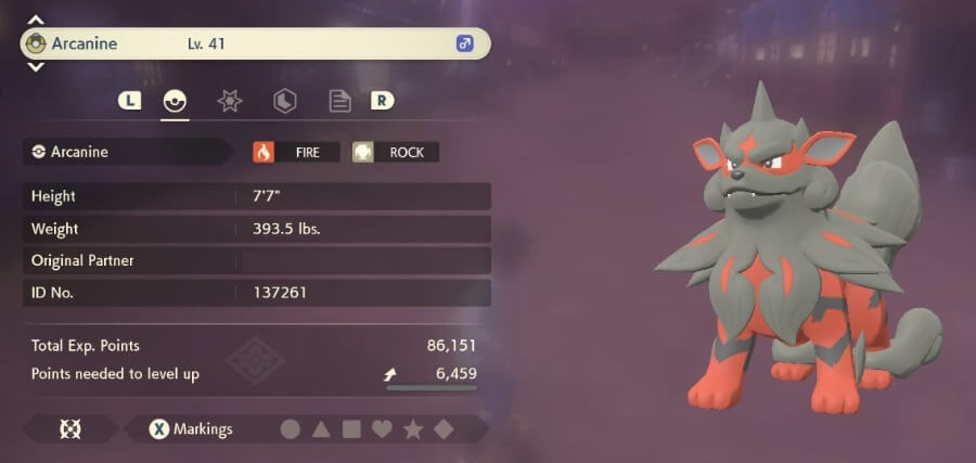 Hisuian Arcanine 与其最终的 Kantonian 后代具有相同的 Base Stats Total,但它具有辅助类型,并且其统计数据分布略有不同。 它也是游戏中最强的非传奇宝可梦之一。