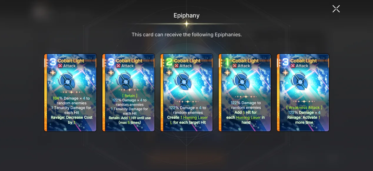 - 钴光:维持构建存在三个强大的 Epiphany 选项: