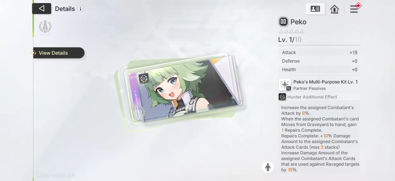 她的战斗风格是围绕应用“余辉”效果而建立的,通过快速攻击造成巨大伤害,迅速打破敌人的坚韧。