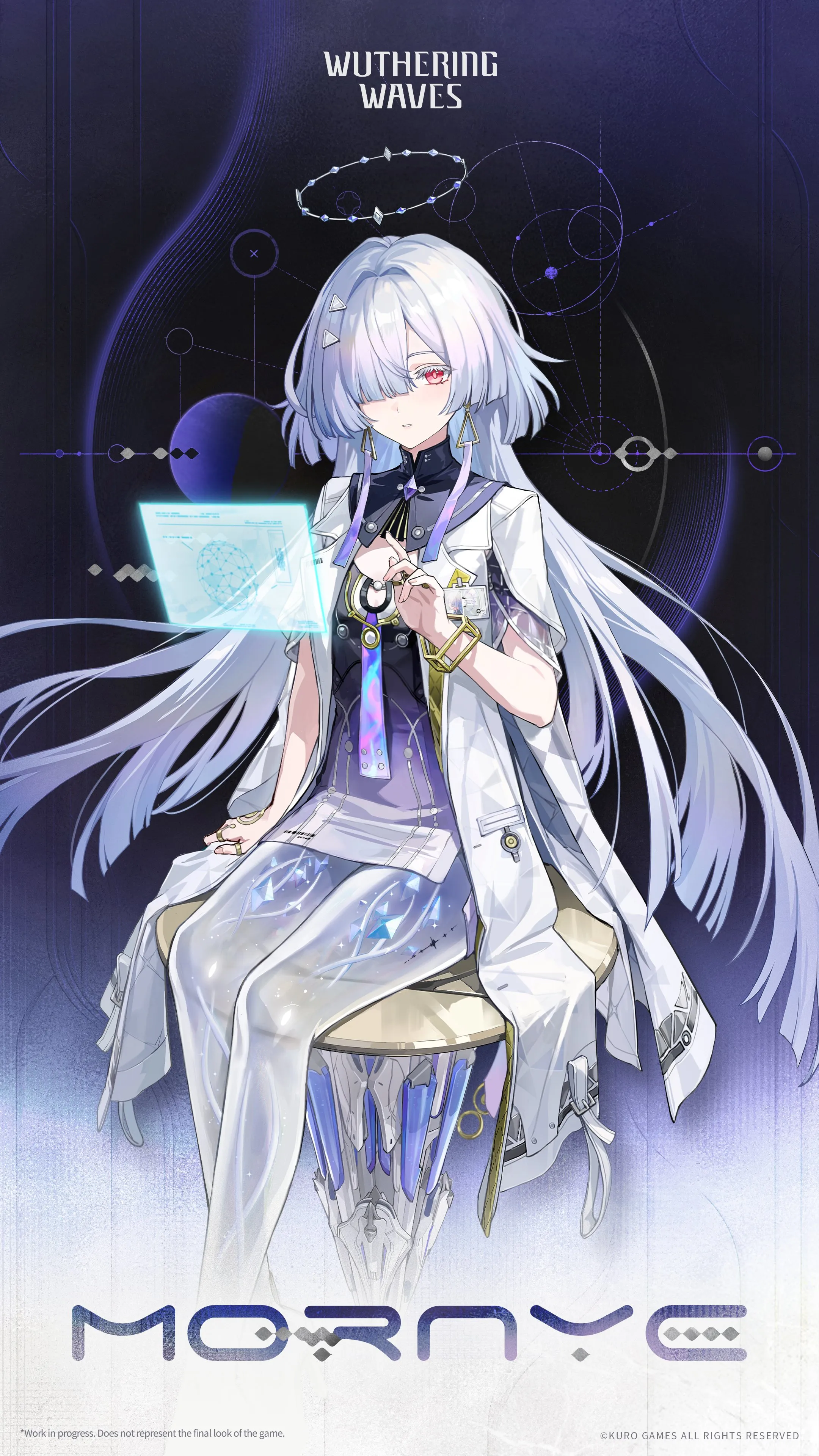 莫尔内 紫白头发、红眼的角色,散发着精致的“动漫”气息。第一眼看到她那双透明的、星光熠熠的双腿立刻就引人注目了。整个作品从背景到设计,都散发着浓浓的科技美感。根据泄露的信息,Mornye 的定位是 围绕革命性的新机制构建的支持和推动者。