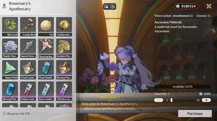 - 爆竹宝石草 可以从以下位置获得: 迷迭香药房的收集点和购买