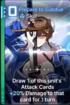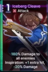 优惠 180% AoE,触发额外命中(-20% 如果灵感激活,则损坏每个)。将所有攻击卡移至牌组顶部,并将每张卡的伤害提高 +50%,从而在多回合链中实现大规模后续行动。