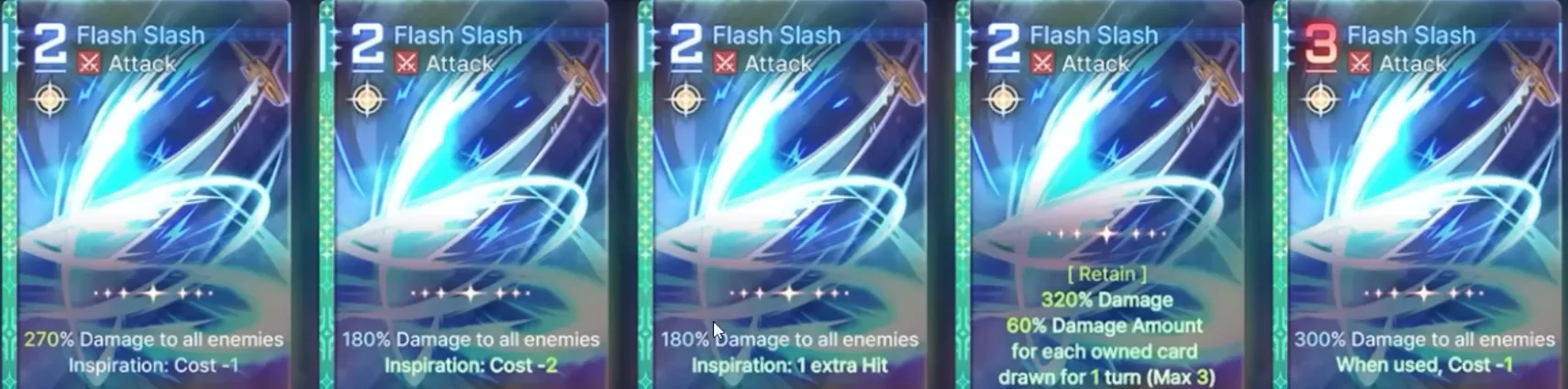 闪斩和准备制服的升级状态包括更高的伤害乘数、降低的成本(零成本的可能性)、多重攻击以及每张抽卡的叠加伤害。